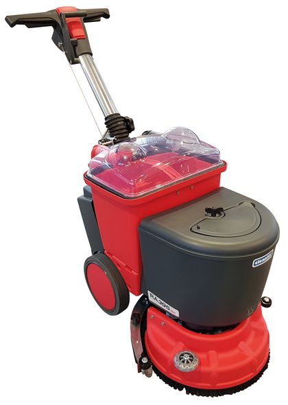 Der handliche Scrubby reinigt sehr effizient und gründlich. Er ist ideal für kleine und sehr überstellte Flächen, Ecken und Winkel. Wo es für andere Maschinen zu eng wird kommt der Scrubby mit seinen 18 cm Bürstenbreite zum Einsatz. Seine Schrubbürste reinigt alle Fugen und Unebenheiten. Auch mit Treibteller und Pads für glatte Böden ausrüstbar.
