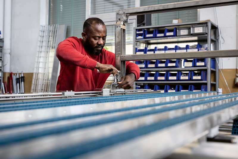 Lagerlogistik, Luft- und Raumfahrt sowie Produzenten von Maschinen zum Abwickeln und Behandeln von Folien finden sich hier ebenfalls. „Für einen Hersteller von Abfüllanlagen für die Getränkeindustrie, liefern wir unsere Komponenten direkt ans Band der Fertigung. Mit unseren Varianten für verschiedene Produktionsprozesse haben wir ein absolutes Alleinstellungsmerkmal.“