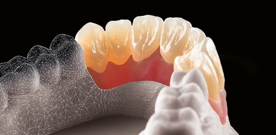 Marcel Brüggert: Die Grundlage von Zirkonoxid bildet Zirkon – eines der ältesten Minerale unserer Erde. Dies wird zu Pulver gemahlen, mit Bindern gemischt und in weiteren Prozessen zu der Hochleistungskeramik verarbeitet, die sich aufgrund ihrer exzellenten Materialeigenschaften in Bezug auf Ästhetik, Langlebigkeit und Stabilität ideal für monolithischen Zahnersatz eignet. Das heißt, der Zahnersatz ist aus einem Stück.