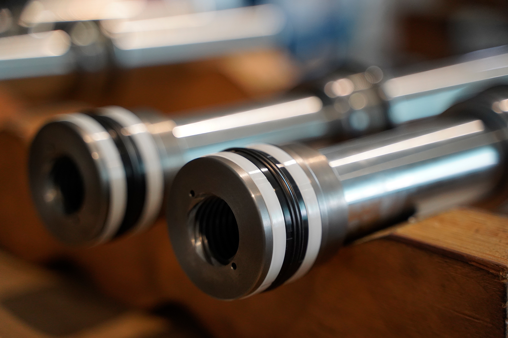 Rainer Schenk: Ein Highlight ist unser eigener Hydraulikzylinder, der patentierte Safety Lock-Zylinder, den wir 2014 eingeführt haben. Das Besondere ist, dass er hydraulische und mechanische Verriegelung kombiniert und erhöhte Sicherheit in hydraulischen Anwendungen bietet. Wir konnten hier sämtliche Fräs- und Drehteile aus unserem Produktionsspektrum einfließen lassen. Der Zylinder wird in einer Halle konstruiert, in einer anderen komplett montiert und geprüft. Zusätzlich fertigen wir für verschiedene Spanmittelhersteller entsprechende Spanmittel als Bauteile, die von den Kunden montiert und weiterverkauft werden.