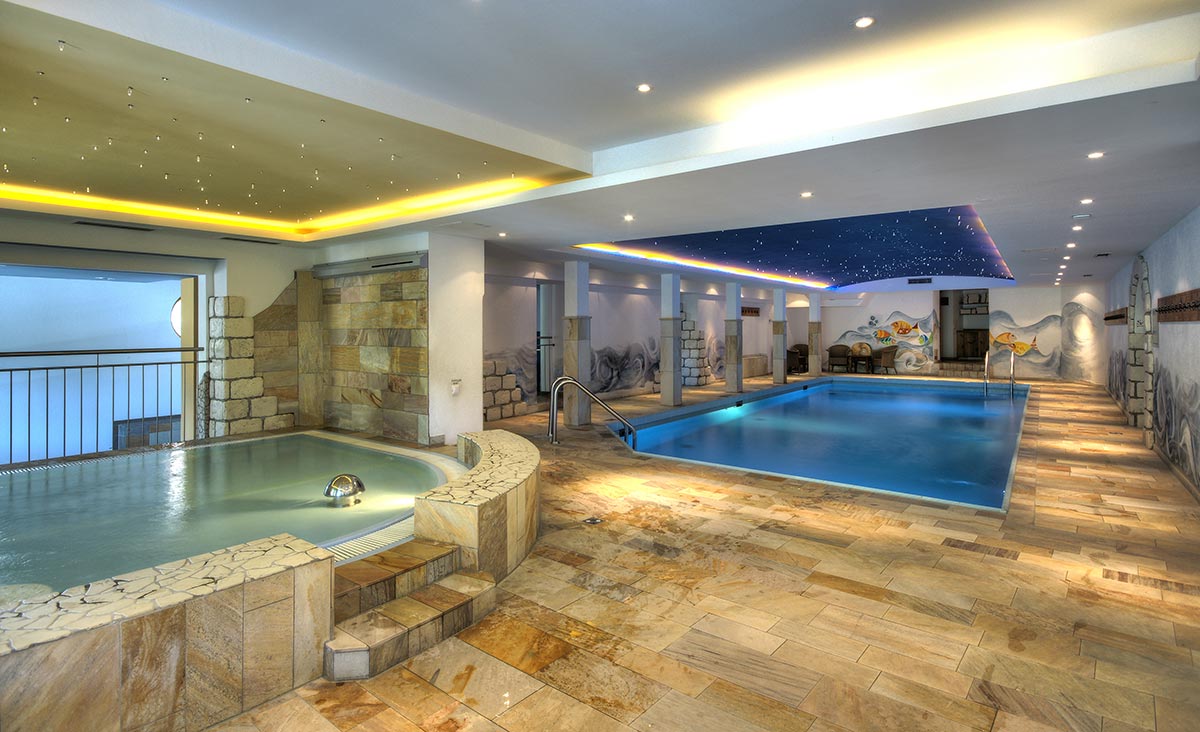 Während sich die Erwachsenen in der finnischen Sauna, Biosauna, Aromasole oder Infrarotsauna entspannen, können die Kinder im Schwimmbad mit mehreren Wasserrutschen plantschen und sich im Anschluss in ihrer eigenen Sauna wieder aufwärmen. Pädagogisch geschultes Personal kümmert sich um die Betreuung der kleinen Hotelgäste.