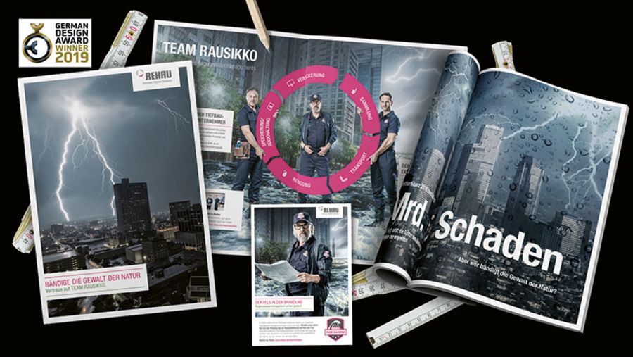 Sibylle Lingner: Eines unserer Flaggschiff-Projekte aus dem B2B-Bereich wurde für unseren Kunden REHAU umgesetzt. Dabei handelt es sich um das Team RAUSIKKO: die Helden des Regenwasser-Managements. Ihr Werkzeug? ‘RAUSSIKO Solution’, die modular einsetzbare Servicelösung für alle Bereiche des Regenwasser-Managements. Die Kampagne wurde crossmedial umgesetzt. Ein weiteres Highlight kommt aus dem B2C-Bereich. Es ist die Protein-Snacklinie der Klaus Karg KG. Pastellige Farbtöne in Kombination mit zeitgemäßen Illustrationen verleihen der Verpackung Modernität sowie eine natürliche Leichtigkeit. Somit wird die Aufmerksamkeit sympathisch auf die Produktvorteile gelenkt. Beide Projekte wurden im Februar mit dem German Design Award 2019 ausgezeichnet.