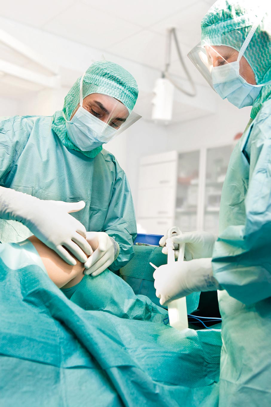 Eine Vorreiterrolle nimmt Mölnlycke unter anderem ein mit dem Wundpflaster Safetac, das beim Ablösen keine Hautirritationen verursacht, oder auch als erster Anbieter individuell zusammengestellter OP-Sets. Ein großes Anliegen ist auch der Schutz des OP-Personals.