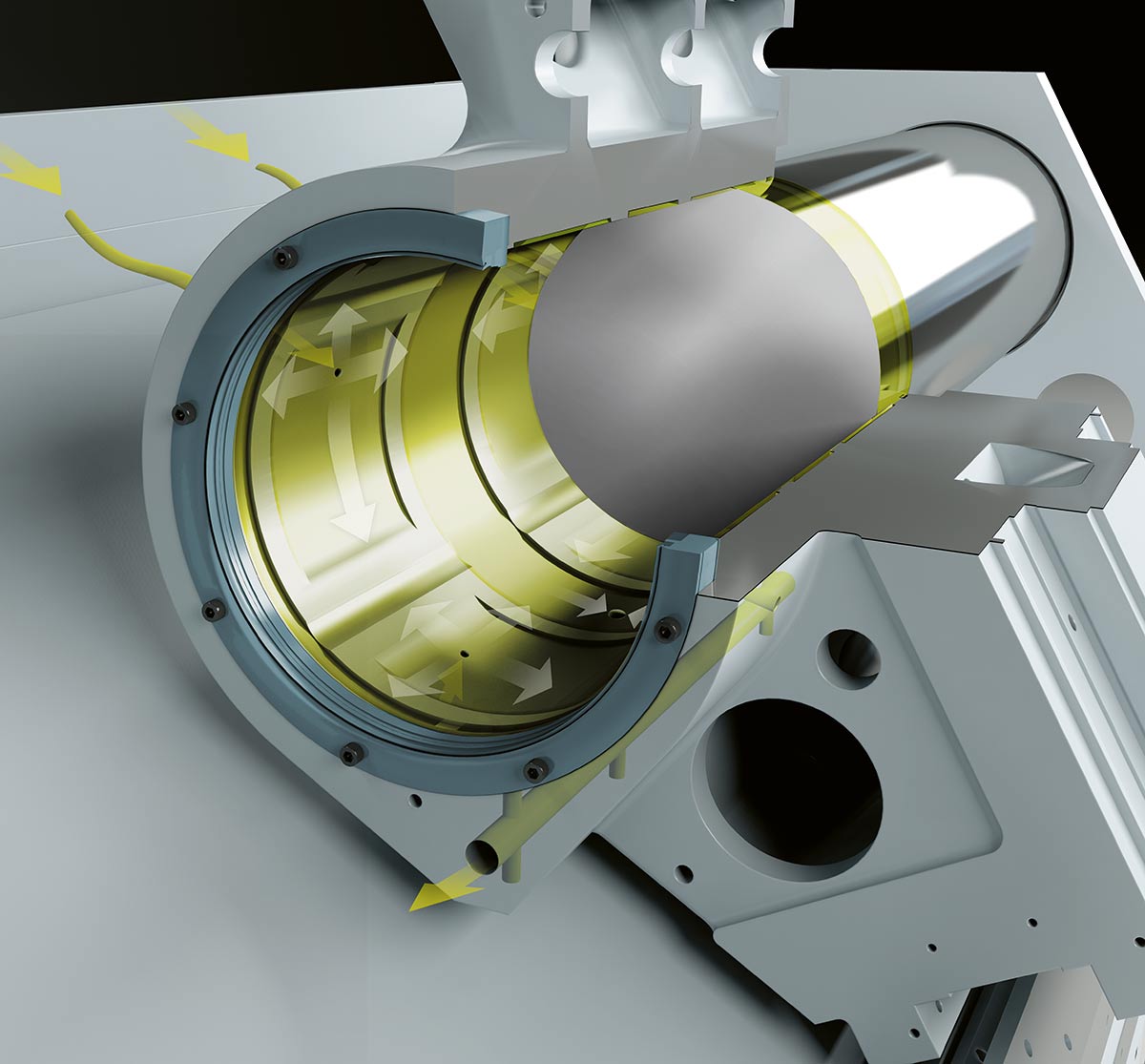 Bis heute verkaufte das Werkzeugmaschinenbau-Unternehmen weltweit mehr als 12.000 Maschinen, darunter 4.500 CNC-Maschinen mit hydrostatischer Rundführung. „Das ist unser Alleinstellungsmerkmal“, betont Adalbert Ottenwälder und erklärt dieses System: „Die Hauptachse hat keine mechanische Verbindung zu festen oder beweglichen Teilen. Ein Ölpolster verhindert Reibung und wirkt wie eine Dämpfungsfeder. Im Vergleich mit der Linearführung bietet die hydrostatische Rundführung eine wesentlich höhere Genauigkeit und Verschleißfestigkeit. Sie eignet sich für große Zerspanungsmomente und anspruchsvolle Zerspanungsaufgaben.“