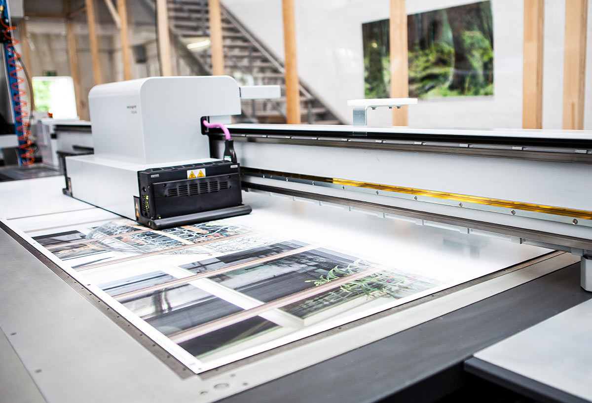 Am Ende des Prozesses stehen unterschiedlichste Produkte. Die Palette reicht von hochwertigen Postern über Leinwanddrucke, fertig gerahmte Produkte, Motive auf Alu-Dibond – entweder direkt aufgedruckt oder als Fineart-Version aufgeklebt – bis zu Echt-Glas-Drucken, Fototapeten, Klebefolien, PVC-Planen und künstlerisch anmutenden Halbtonbildern. Dabei sind die Formate frei wählbar – und das stufenlos bis auf den Millimeter genau.