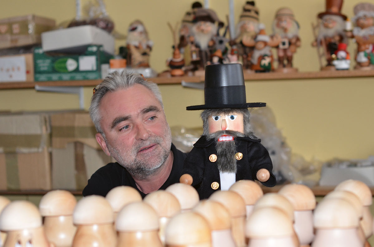 Gunther Ulbricht: Ob Nussknacker, Räuchermänner, Christbaumschmuck, Pyramiden oder Spieldosen und Osterschmuck – wir probieren immer, für jede Artikelgruppe ein bisschen an Neuem zu bringen. Unser Erfolg ist unsere Kontinuität, und wir wollen stets gute Neuentwicklungen präsentieren. Ich lasse den Kunden entscheiden, auch wenn wir in Konkurrenz zu etwa 180 Handwerkern und zwei bis drei größeren Betrieben stehen.