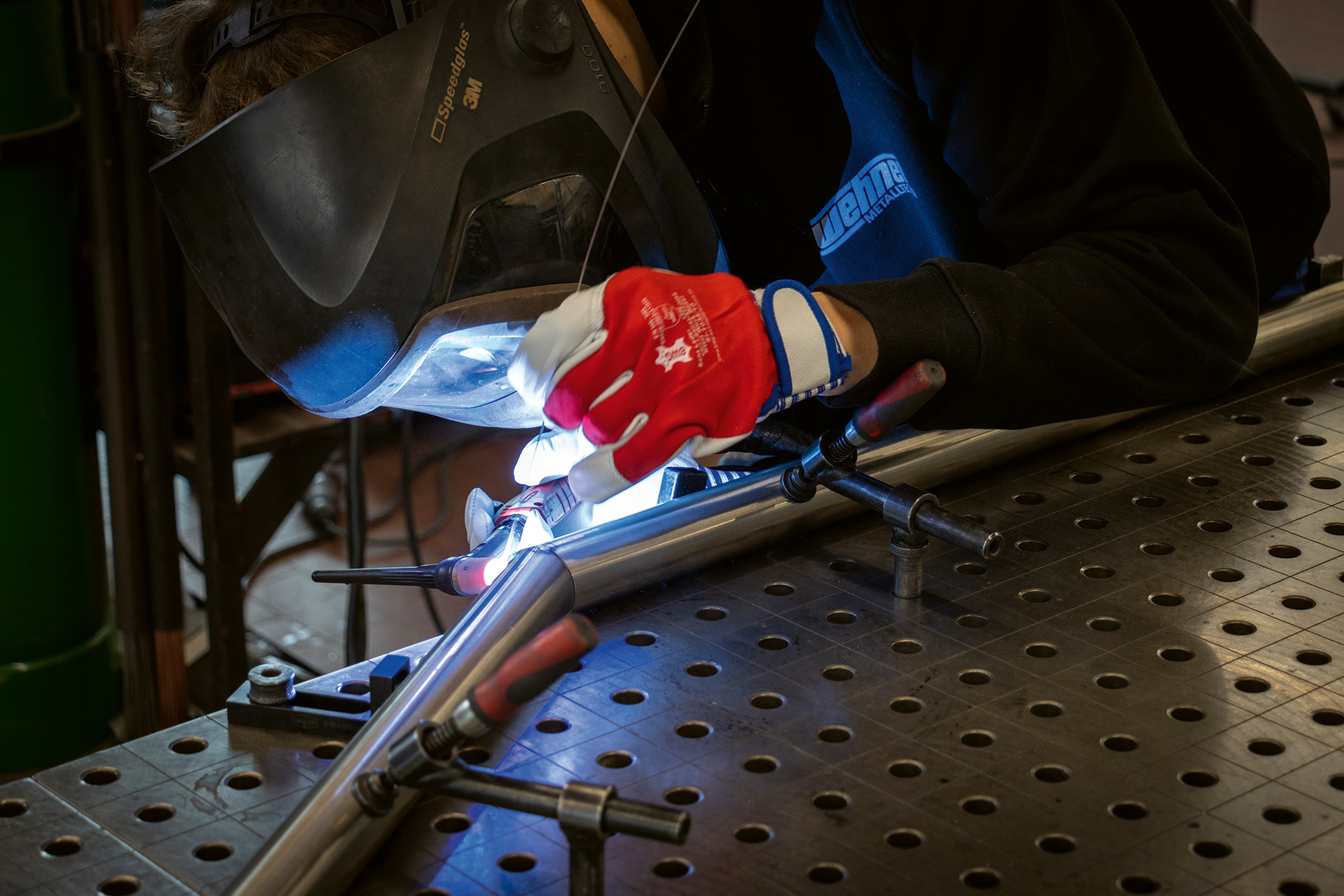 Gegründet 1971 als Abschleppdienst und Kfz-Betrieb, wandelte sich das Unternehmen in den 1990er-Jahren schrittweise in Richtung Metallbau und Blechbearbeitung. Als Boris Wehner 2008 als gelernter Zerspanungsmechaniker und Feinwerkmechanikermeister ins Unternehmen eintrat, kamen Zerspanung und – naheliegend aus der Unternehmensgeschichte heraus – die Entwicklung von Ölspurbeseitigungsmaschinen hinzu. 2016 übernahm er den Betrieb mit 28 Jahren in 2. Generation. Heute gliedert sich das Unternehmen in vier Bereiche: Fahrzeugbau, Blechfertigung, Zerspanung und Metallbau. Die drei Fertigungsbereiche sind eigenständige Kostenstellen, die sowohl intern zuliefern als auch direkt am Markt agieren. „Der Kunde bekommt bei uns das Drehteil, das Blechteil und das Ganze noch zu einer Baugruppe verschweißt – alles aus einer Hand, mit nur einem Ansprechpartner“, erklärt Boris Wehner. Der hohe Automatisierungsgrad ermögliche dabei wettbewerbsfähige Preise und kurze Lieferzeiten.