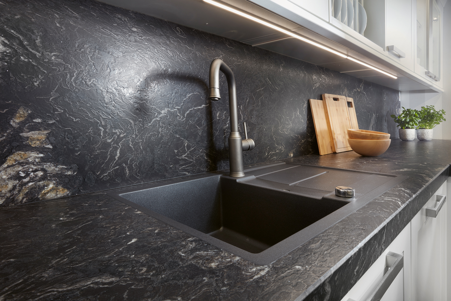 Oliver Barth: Wir sind Teil der Culinoma-Gruppe, was uns eine stabile Basis gibt, operieren aber als eigenständige Marke mit aktuell 38 Standorten in Deutschland. Unser eigenes Granitwerk ist ein echtes Alleinstellungsmerkmal – seit 2018 haben wir hier massiv investiert und können nicht nur Granit, sondern auch Quarz, Marmor, Keramik und andere Materialien anbieten. Unsere Küchen stehen für Design, Ästhetik und Emotionen. Mit knapp 200 Mitarbeitern und einer erheblichen Umsatzzahl setzen wir auf Effizienz und Qualität. Letztlich sind es jedoch die Menschen, die den Unterschied machen: Unsere Mitarbeiter bringen die sogenannte Marquardt-DNA mit – sie stehen für Geradlinigkeit, Transparenz und Leidenschaft. Diese Werte spiegeln sich auch in unserer klaren Kommunikation mit den Kunden wider, die wir von Anfang an miteinbeziehen.
