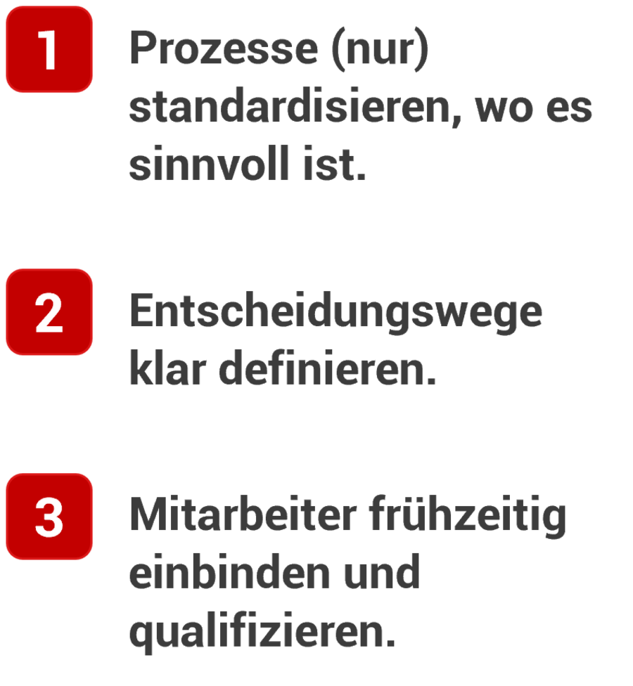 Sprich, wer nur an einer Stellschraube dreht, verschenkt Potenzial. Vorteil Mittelständler: Sie sind näher an Entscheidungen, oft schneller in der Umsetzung und verfügen über gewachsene Strukturen mit hoher Identifikation. Allerdings kann sich dieser Vorteil ins Gegenteil verkehren – dann, wenn diese Strukturen bremsen, weil sie nicht regelmäßig überprüft werden.