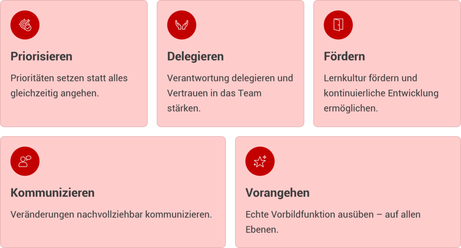 Last, but not least, muss auch das Management seinen Teil dazu beitragen. Denn schließlich entscheidet die Führungskultur eines Hauses maßgeblich darüber, ob Veränderung gelingt – Mitarbeiter erwarten Orientierung, Transparenz und Beteiligung. Gleichsam steigt der Druck auf Entscheider, unter Unsicherheit klare Richtungen vorzugeben.