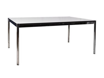 - Hersteller: USM Haller - Design: Prof. Fritz Haller - Maße (H x B x T) in cm: 74 x 175 x 75 - Plattenstärke: 2 cm - Platte: unbenutzt/neuwertig - Tischform: Rechteck - Dekor: perlgrau - Tischplatten-Ecken mit Aussparungen für die Tischbeine, die mit der Oberkante der Tischplatte plan abschließen - 4-Fuß-Gestell aus Präzisions-Stahlrohr, verchromt - Gestell gebraucht